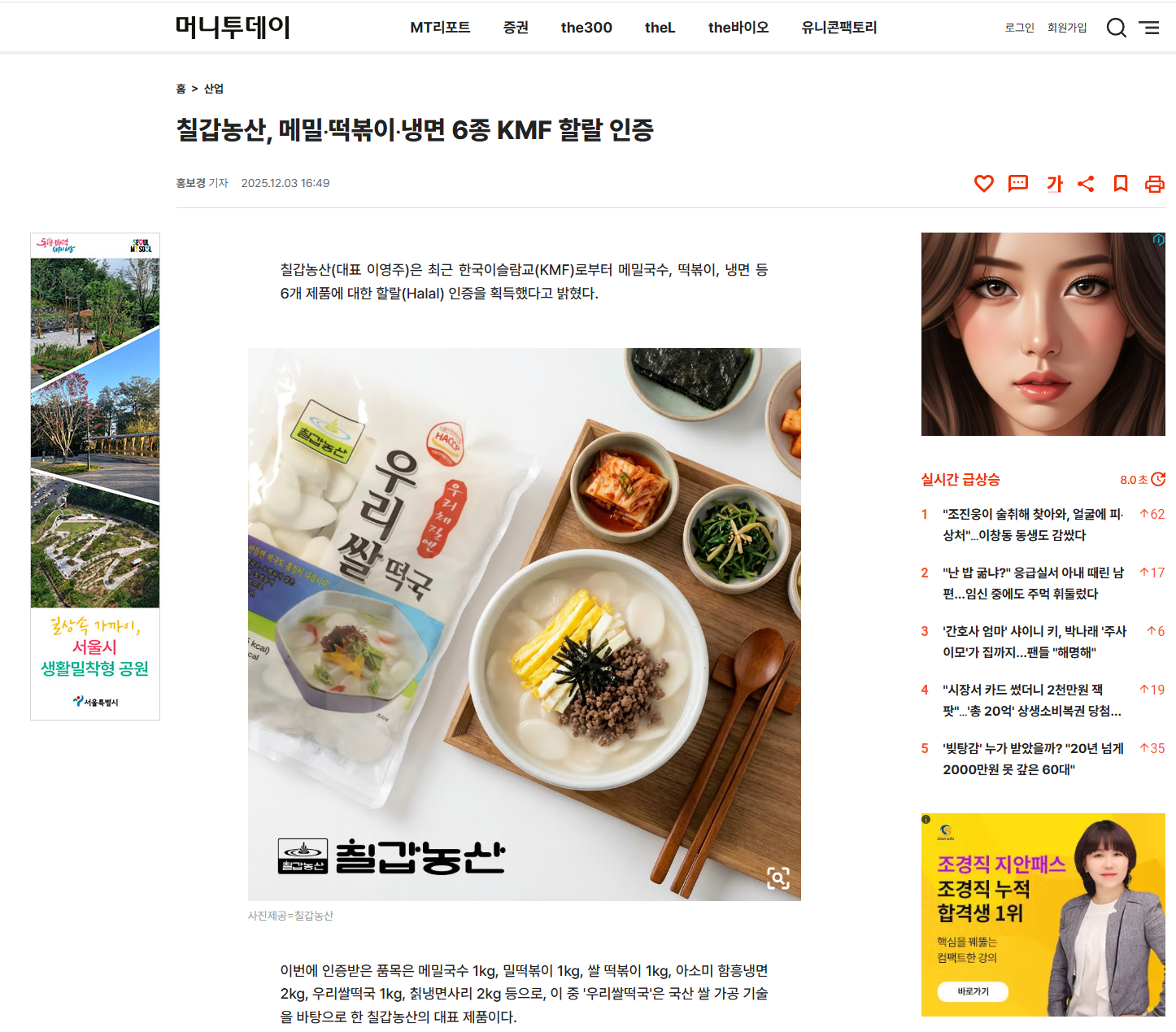 메밀·떡볶이·냉면 6종 KMF 할랄 인증 2025-12-03 |